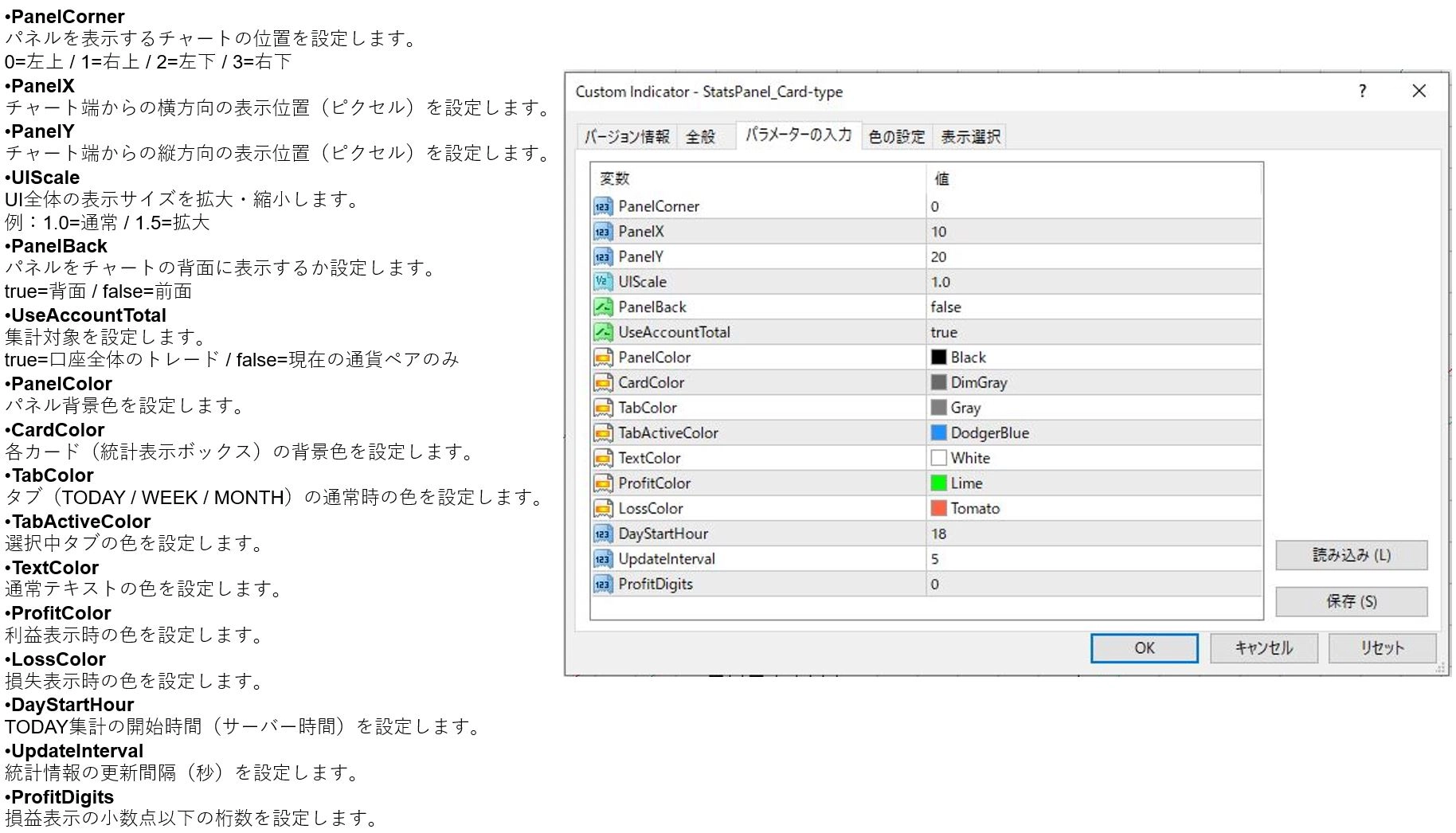 このインジケーターは、トレード成績をチャート上にパネル表示し、リアルタイムで確認できるツールです。