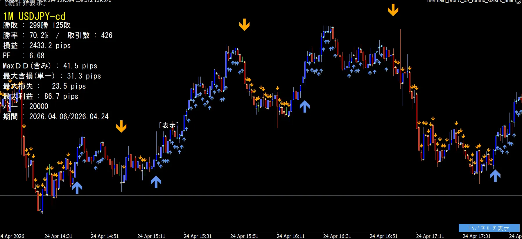 ◎ 本当は、ゴールドで最も収益性が高いので試していただきたかったのですが、調整がつかず、今回はドル円です。ごめんなさい。
