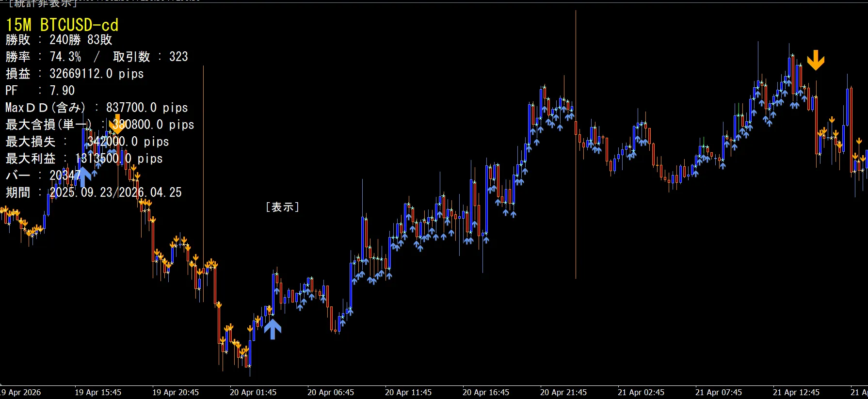 ★このシステムは、勝率が65~75%、PFが5~10(システム内自動集計上の数値)と今までには存在しなかったレベルのものです。今後の参考に、下のchart画像とデータをぜひご覧ください!