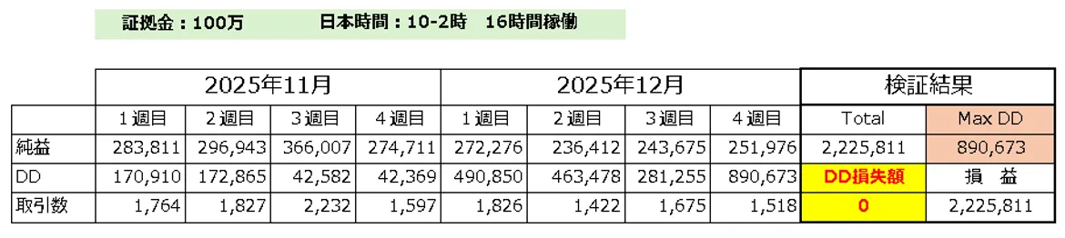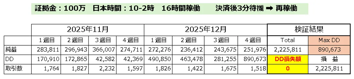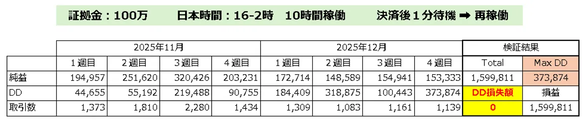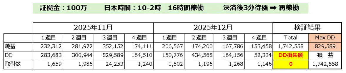 ボラやトレンドが発生しやすい日本時間の10時から早朝2時までの16時間稼働に限定すると