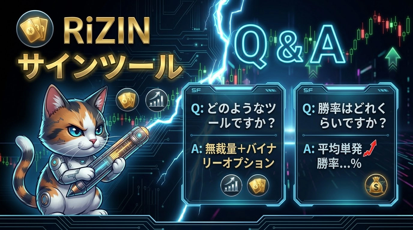 高機能の矢印に従い、迷わずエントリー、無理なく高精度。初心者でも分かりやすく、分散トレードで安定した利益を目指すRiZINサインツール。