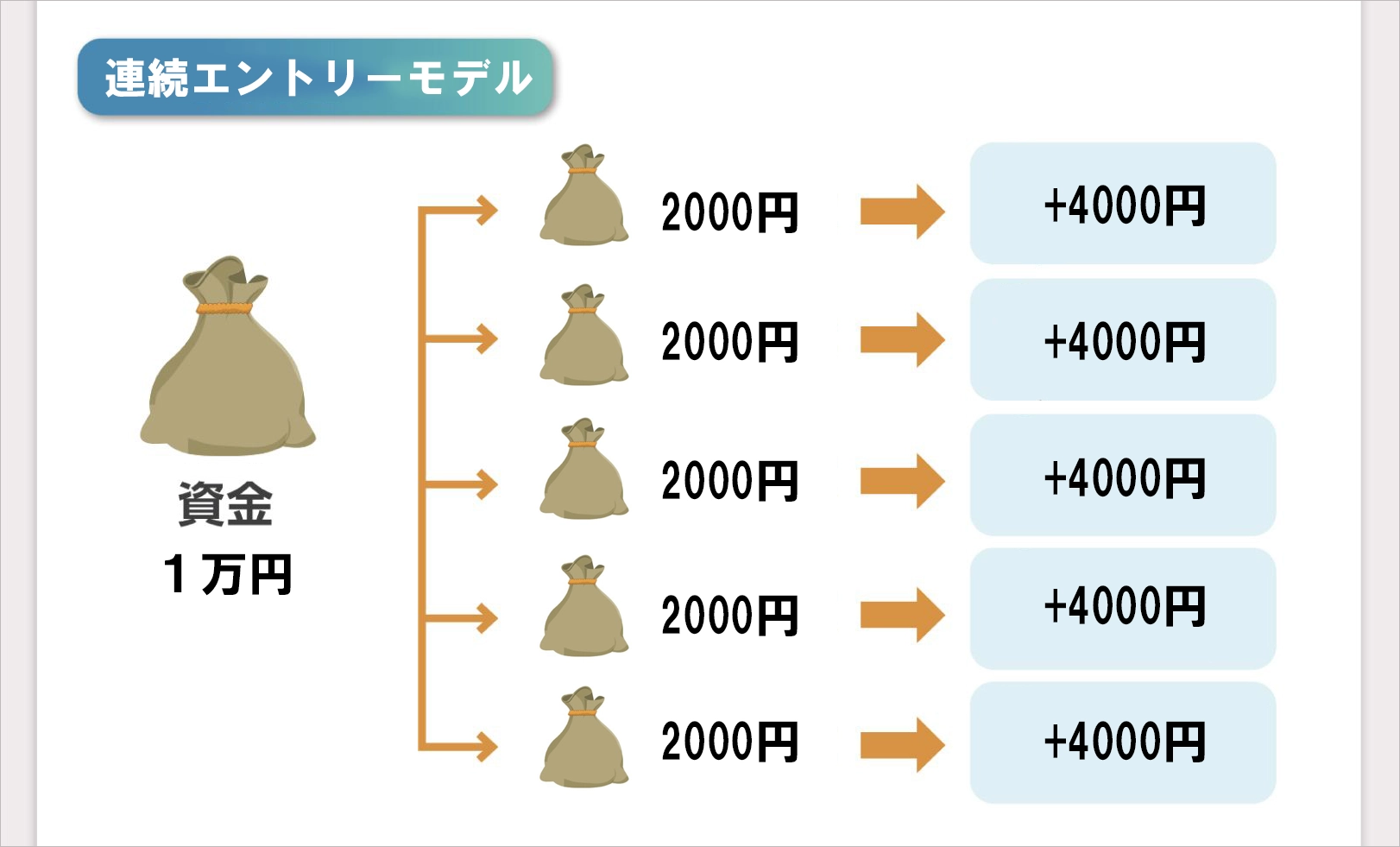■トレード事例 「RiZINサインツール」は、 特定の時間だけでなく、さまざまな取引時間に対応できるのが特長です。 短い時間の取引では、 1分~5分のバイナリー取引ととても相性がよく、 テンポよくチャンスを見つけることができます。 また、 15分以上の少し長めの時間でも、 矢印が連続して出る場面を活かすことで、 無理なく利益を積み重ねていくことが可能です。 そのため、 相場の流れにうまく乗れたときには、 思っているよりも早いペースで収益が増えていくことも珍しくありません。 これからご紹介するのは、 実際のチャートを使ったトレード事例です。 一度に大きく狙うのではなく、 安定した勝ちを積み上げながら、コツコツと利益を積み上げていく そのイメージをぜひご覧ください。