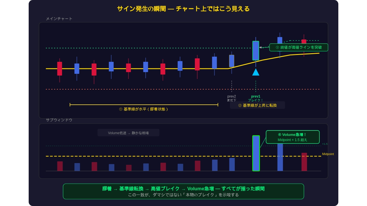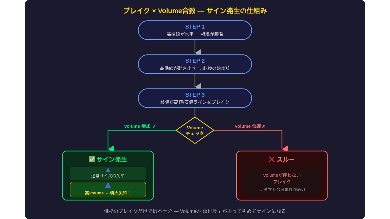 特徴 3:ブレイク × Volume合致サイン