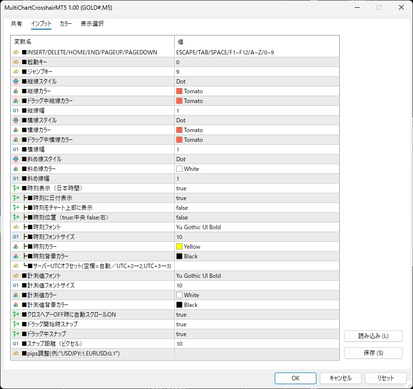| pips調整 | 通貨ペアごとに独自のpips換算倍率を設定可能 |