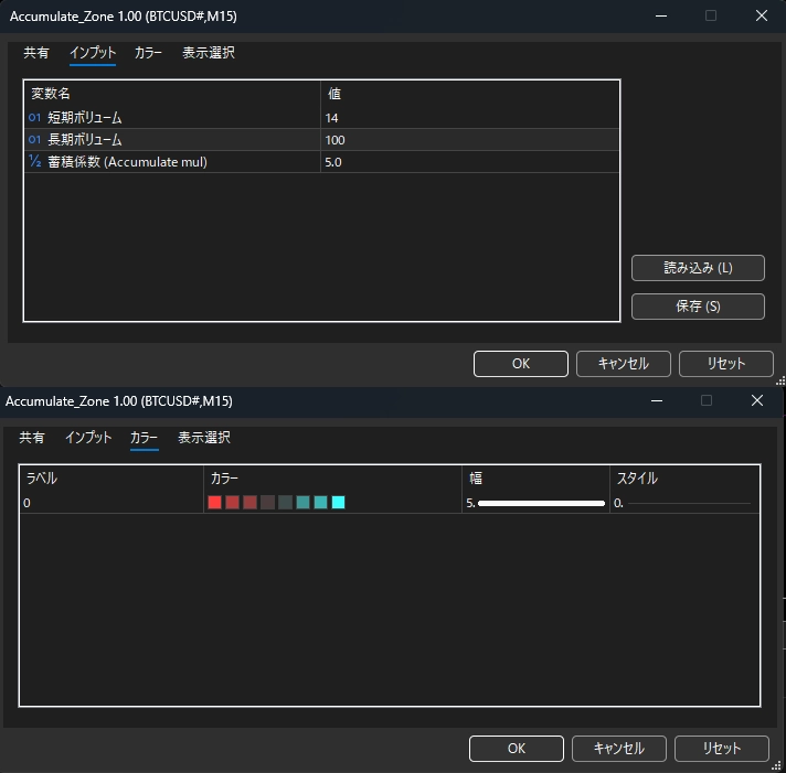 Accumulate_Zoneは、それらと同じ収縮ポイントを独自の算出で評価し価格にペイントします。