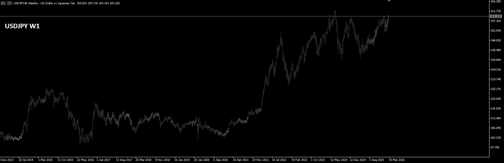 USDJPY W1は現在ポジションの蓄積が起こっているようです。