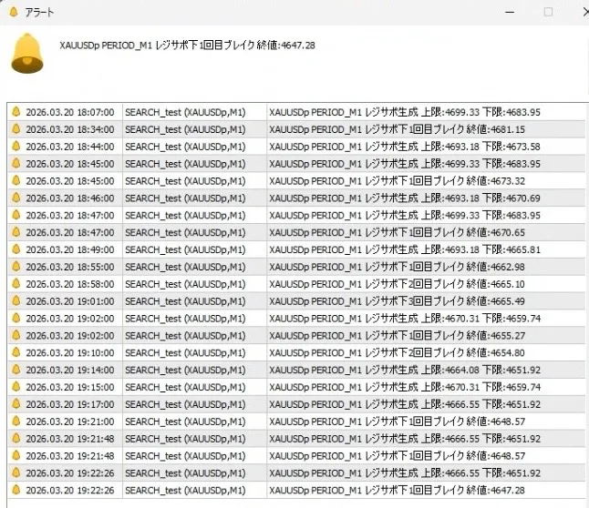 ライン生成後、短期間でブレイクされた場合は、有効性が低いと判断され自動的に削除されます。
