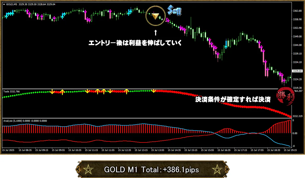 制作するに当たっては3つのインジケーターで独自の解析をしており、