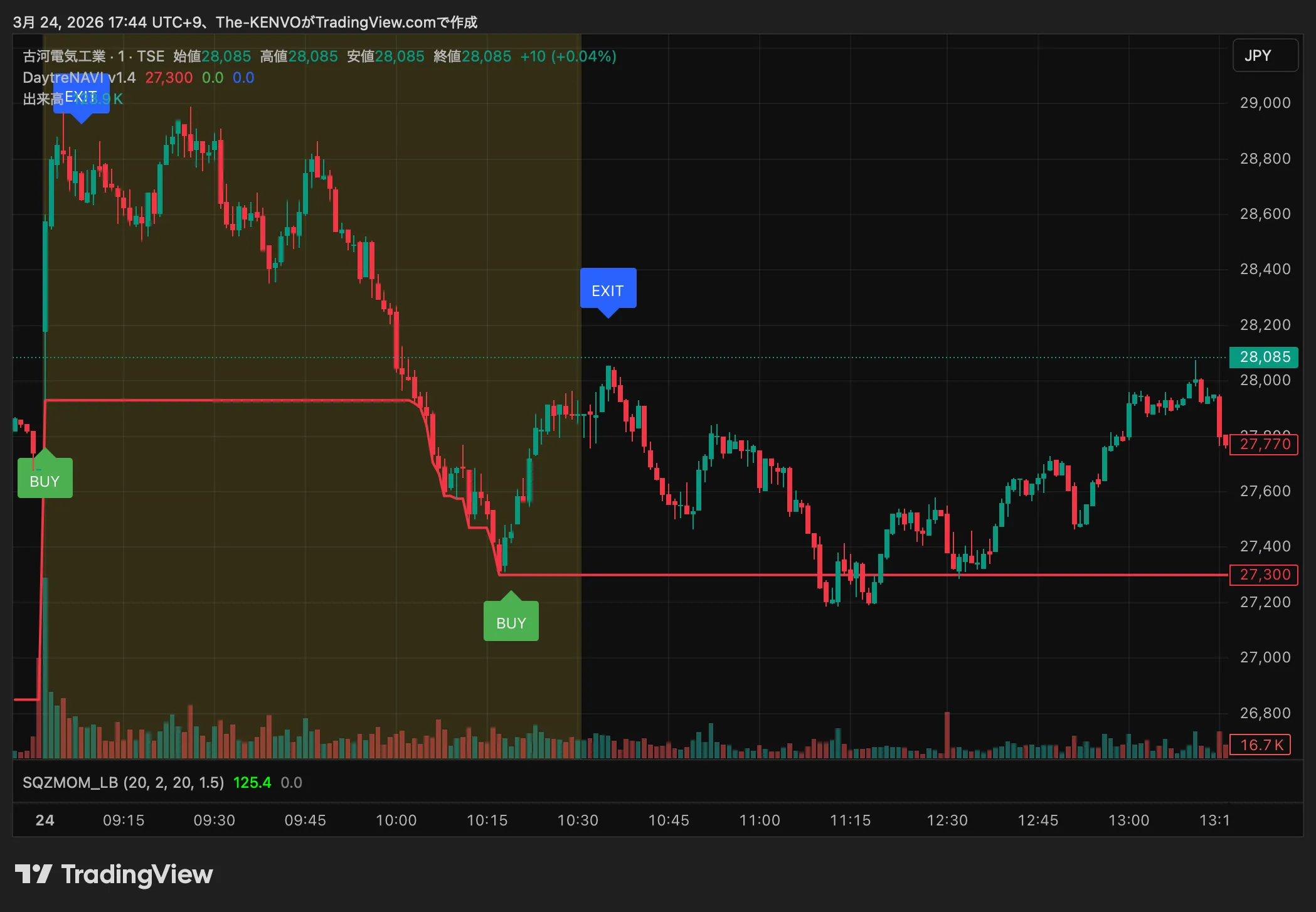 • 前場安値付近(10:15頃)で反発 → BUYシグナル