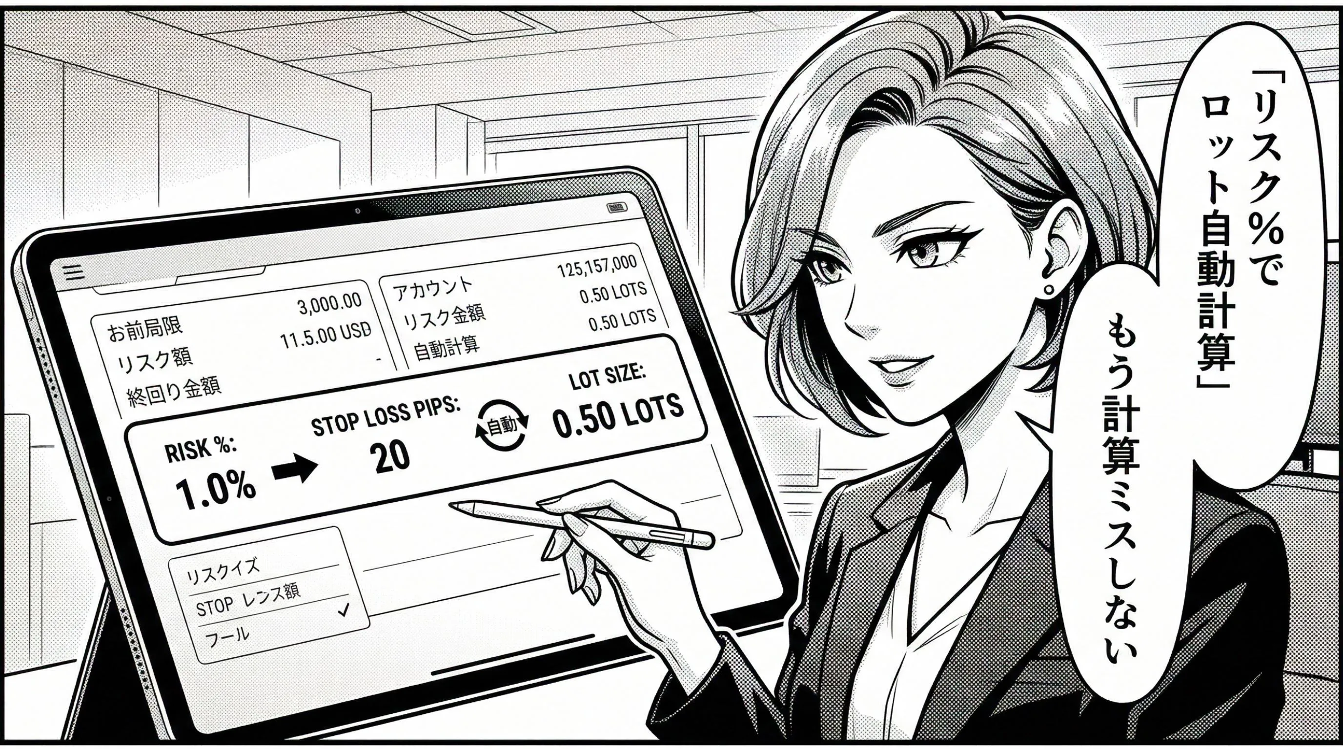 - 資金に対するリスク%でのロット自動算出