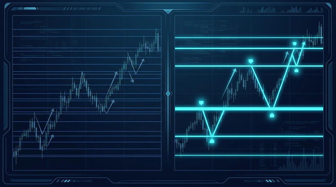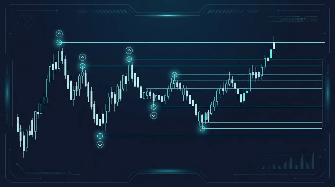 このインジケータは、過去の値動きを自動解析し、水平線の候補を機械的に抽出して描画します。