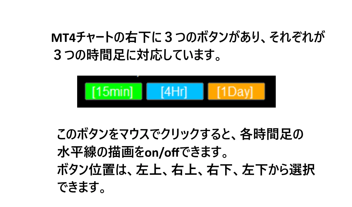 チャート上には、時間足ごとのライン表示を切り替えられるボタン機能も搭載されています。