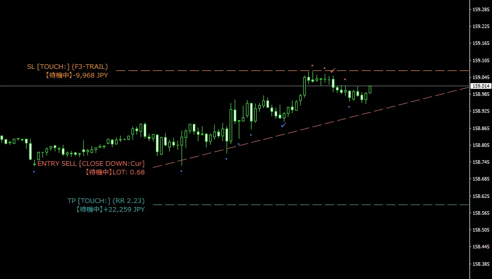 ENTRY、SL、TPそれぞれタッチか終値抜けを選択する事が出来ます。