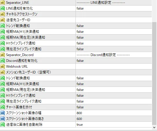 Discord通知対応(Webhook):Discordチャンネルへ通知。こちらはチャート画像同時送信に対応。※Windows版MT5のみ