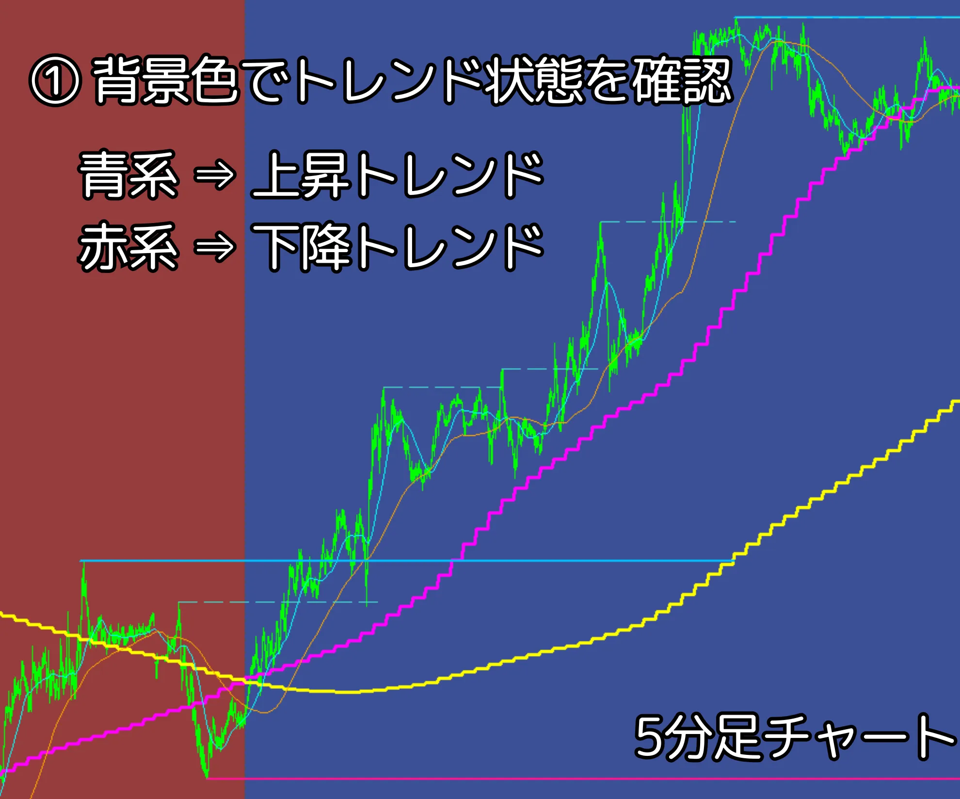 ① 背景色でトレンドを確認