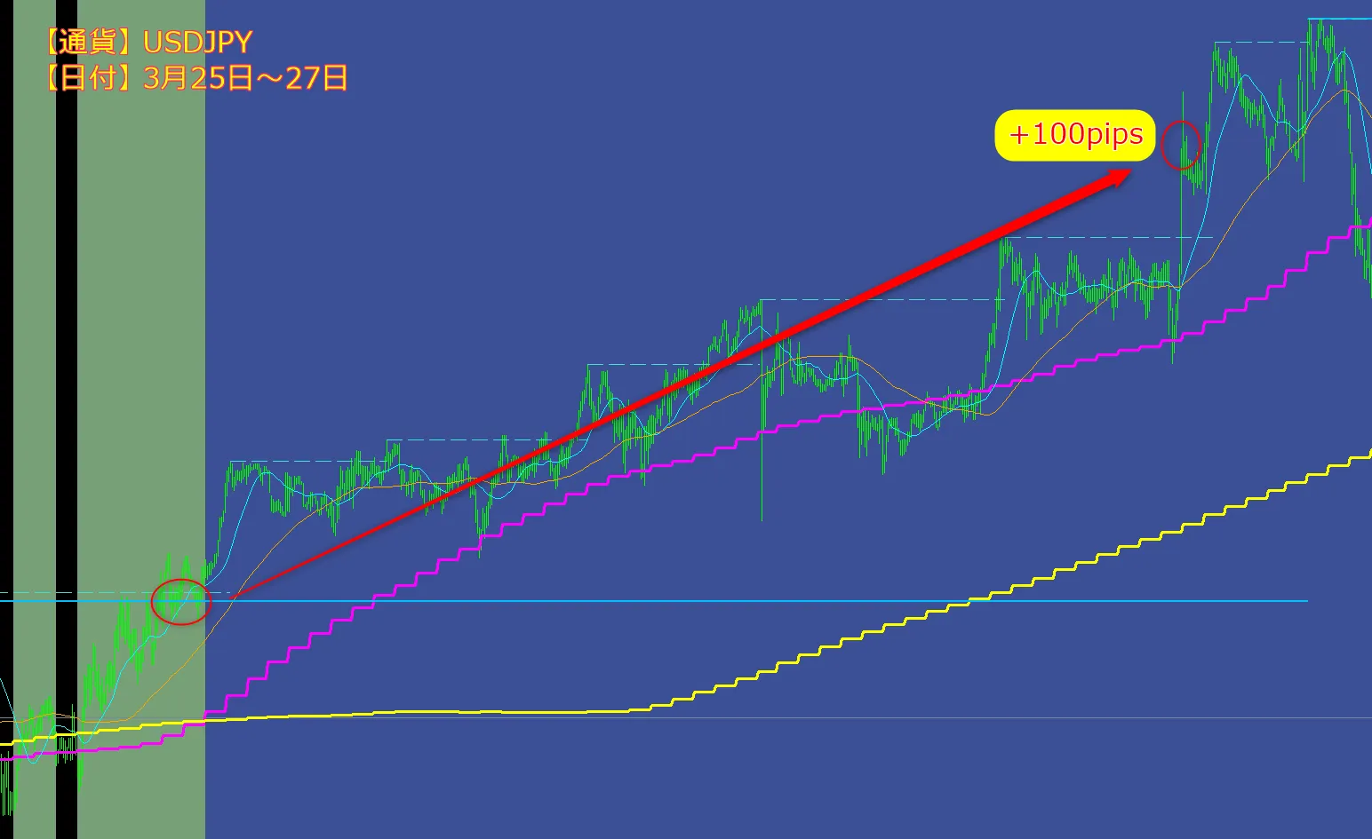 一撃で100pips超の値幅を狙うことも可能:ボラティリティのある相場で威力を発揮