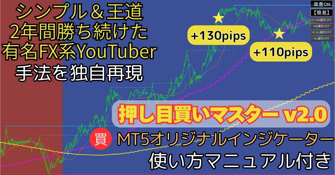 そこで誕生したのが、オリジナルインジケーター『押し目買いマスター v2.0』 です。