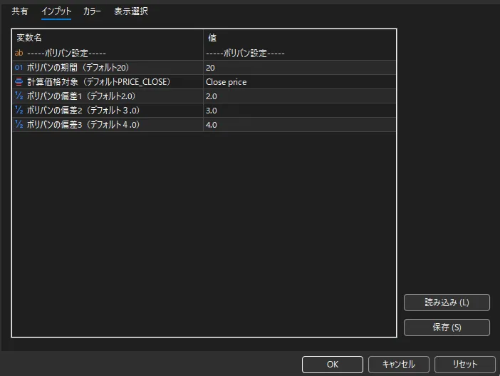 【MT5】ボリンジャーバンド3ライン表示(インジケーター)