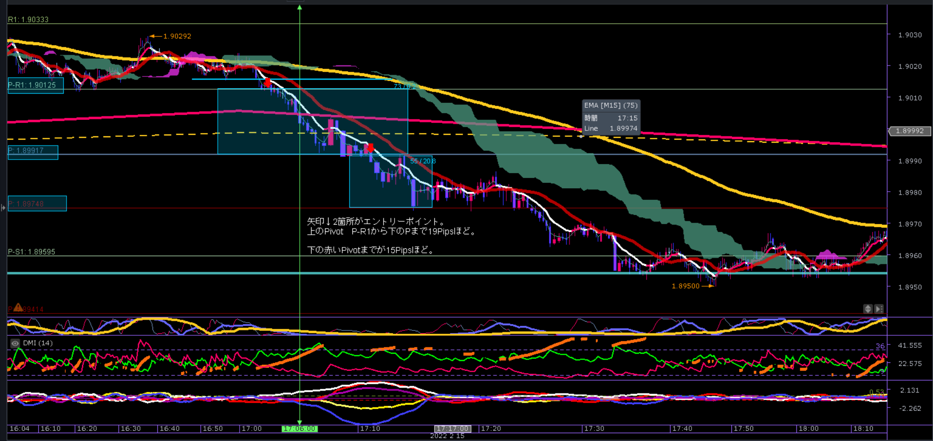 ローソク足がPIVOTタッチで上髭付けて確定しています。まさにここまでで利確して相場から離れていってしまうのが手に取るように分かります。