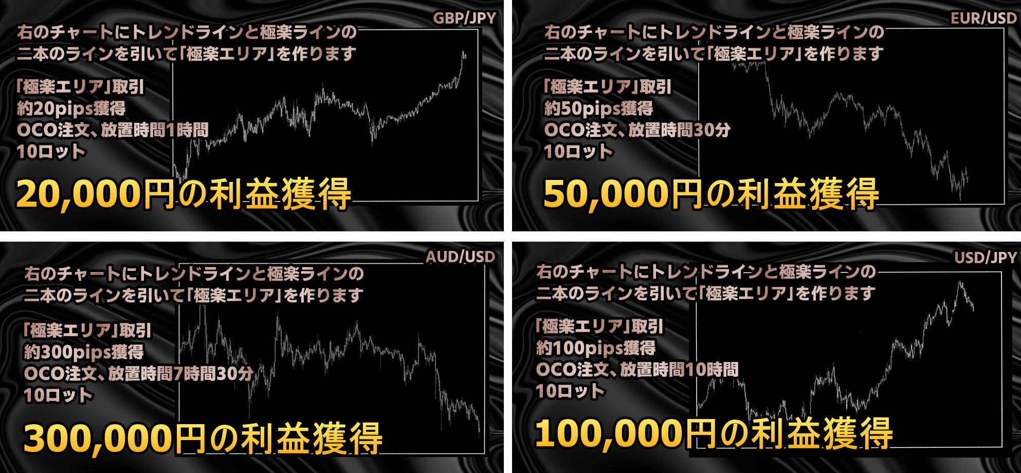 スキャルピングアンリミテッドを購入した人は 以下のような点で優位に立つと期待されます。 ・短期間で多くのトレードを行い、小さな価格変動から高収益を上げる能力が向上します。 ・ポジションを短時間で解消するためトレードのストレスが軽減されます。 ・短時間の取引機会が多いため、忙しいスケジュールのトレーダーにも適しています。 ・トレードチーム5名の英知が詰まった2つの強力なトレード手法が手に入ります。 ・短期集中型トレードは真似するだけで五日で利益を見込める可能性があります。 「二代トレード手法公開」 1.秘密のインジケーターを暴露します!後はエントリーサインを待つだけ! 2.秘密のエリアトレードを暴露します!後はガッツリ稼ぐだけ! あなたのトレード戦闘力を爆上げする8つのエビデンス!! 1.シンプルで革新的なトレード手法が二種類手に入ります。 2.数秒から数分のトレードがメインなのでPCに張り付くストレスはありません。 3.二本のラインと秘密のインジケーターで完結するので難解な学習が不要です。 4.圧倒的な勝率と安定性でストレスフリーのトレードができます。 5.絶対思考でルールを作るので短期間で利益を出すことが考えられます。 6.ポジションを持つことがギャンブル的ドキドキから利確のワクワクに変わります。 7.私たちトレードチーム5人の英知を結集した手法で一億円トレーダーを目指します。 8.私が1,700万円を溶かした経験から復活した手法が丸ごと完全に手に入ります。 スキャルピングアンリミテッドは攻撃力と同時に守備力にも力を入れています。 「資金管理無くして勝利無し!」 スキャルピンアンリミテッドのコンテンツ