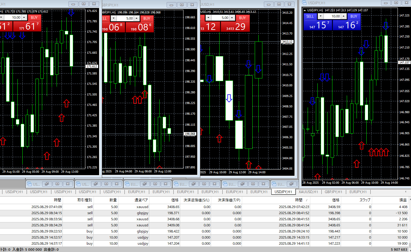 USDJPY/EURJPY/GBPJPY/XAUUSDのオリジナルインジケーター+裁量で1時間に1万円は可能性大いにあります!