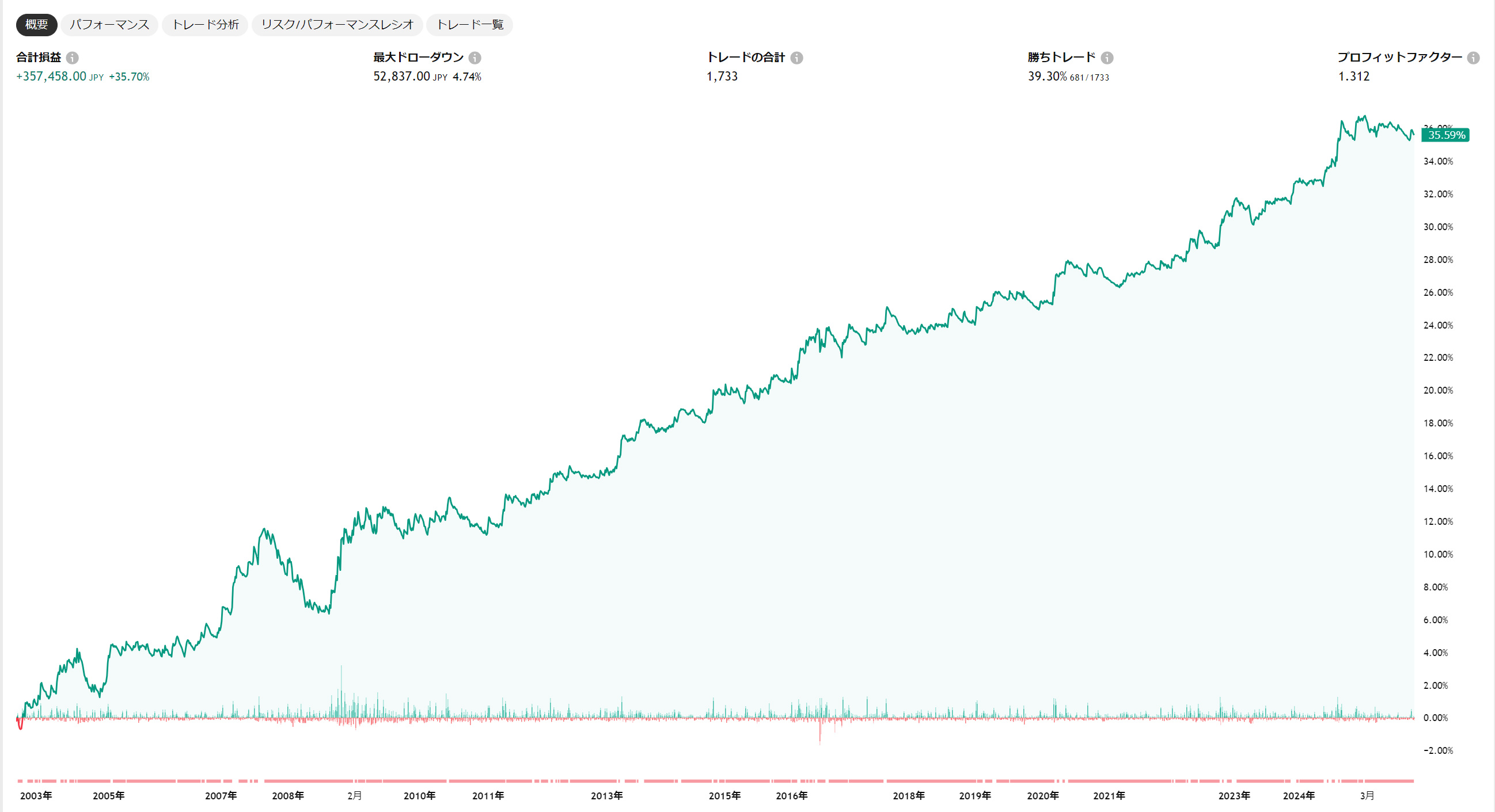 皆さんEAを購入する場合、短期的な成績を見て購入する方がいると思いますが、重要なのは2000年代あたりから一貫して稼げていることです。