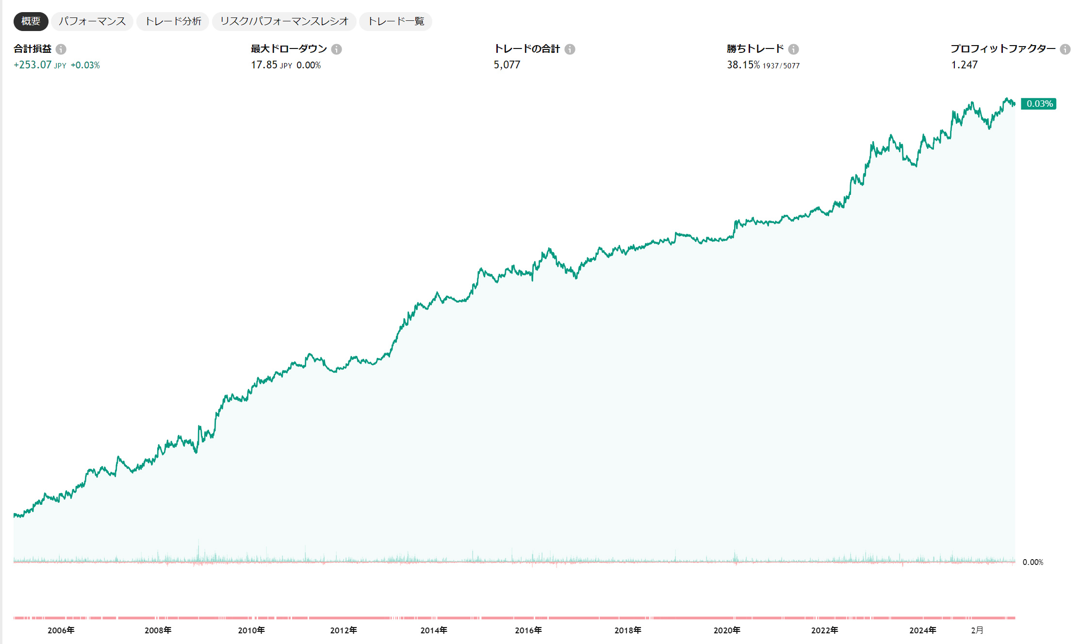 これはシステムトレードでもできますが、裁量を加えると、これ以上の成績になるので、