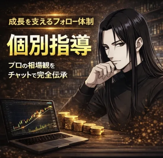 ※本商品は投資助言を行うものではありません。 ※投資に関する最終決定はご自身の判断で行ってください。 ※本商品は利益を保証するものではありません。 ※個別指導はチャットでの技術的なサポートおよびインジケーターの使い方に関するご質問対応です。具体的な売買の指示は行いません。
